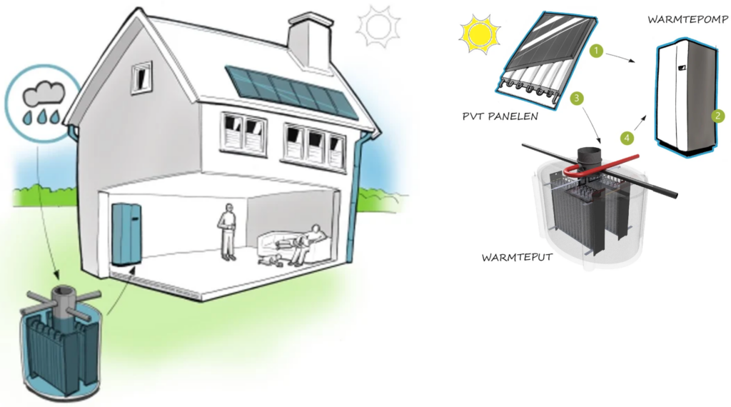 Je kan makkelijk met een aantal warmteputten in de voortuin en met het ombouwen van PV panelen naar PVT een modulair ZLT warmtenet aanleggen. Met een ZLT warmtenet kan het elektrisch vermogen van een warmtepomp van 3,5 kW teruggebracht worden naar 700 W. Ook de gelijktijdigheid wordt zo verlaagd omdat tijdens de avondpiek de verwarming niet hoeft aan te staan.